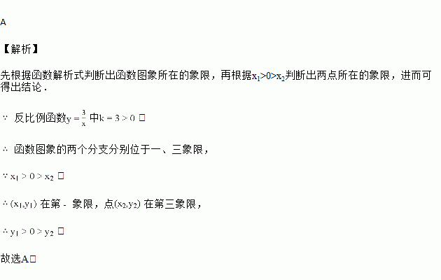 反比例函数图象上的两个点为、,且,则下列式子一定成立的是