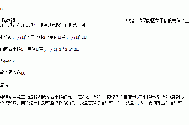把抛物线y=(x+1)2向下平移2个单位,再向右平移1个单位,所得到抛物线是( )
