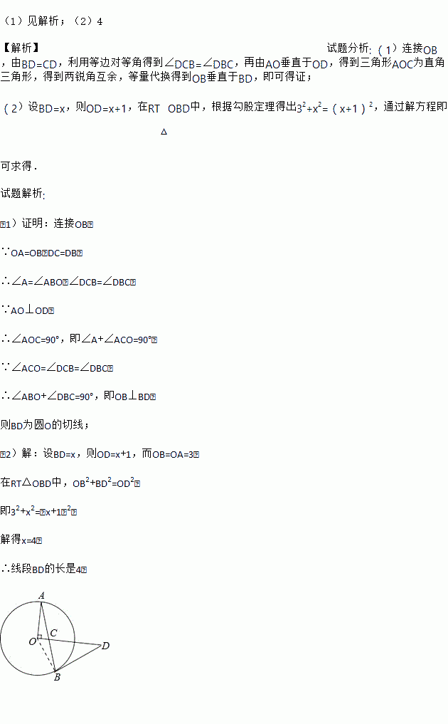 (2)当OA=3,OC=1时,求线段BD的长.