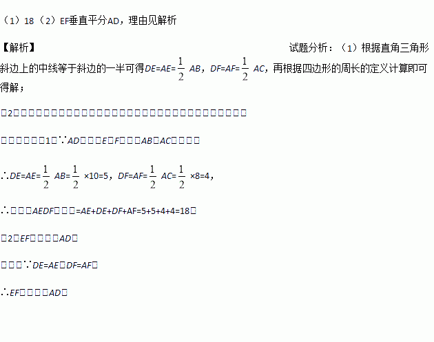 (1)AB=10,AC=8,求四边形AEDF的周长;