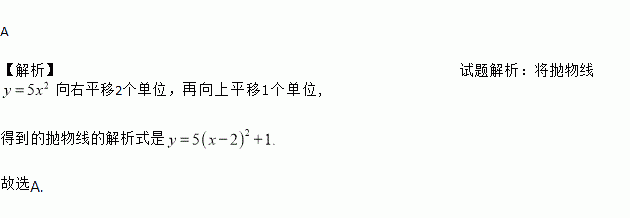 若将抛物线y=5x2先向右平移2个单位,再向上平移1个单位,得到的新抛物线的表达式为( )