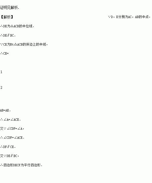 如图, 中,点D、E分别是AC、AB的中点,点F在BC的延长线上,且.
