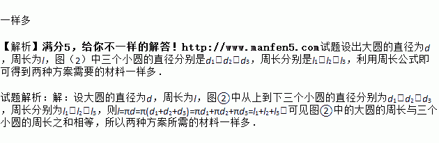 某公园计划砌一个形状如图①所示的喷水池,有人建议改为图②的形状,且外圆的直径不变,只是担心原来备好的材料不够.请你比较两种方案哪一种需要的材料多.