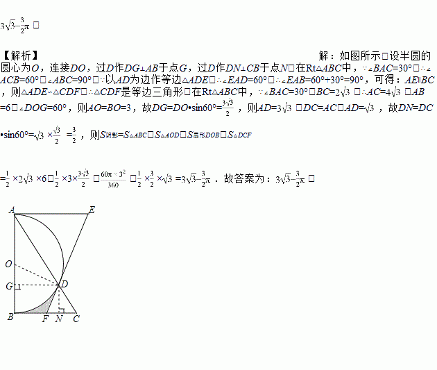 (2017湖北省恩施州)如图,在Rt△ABC中,∠BAC=30°,以直角边AB为直径作半圆交AC于点D,以AD为边作等边△ADE,延长ED交BC于点F,BC=