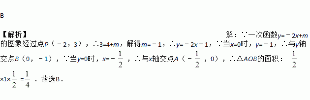 一次函数y=-2x+m的图象经过点P(-2,3),且与x轴、y轴分别交于点A、B,则△AOB的面积是( )