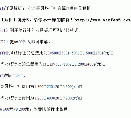 “十一”期间,某中学七年级(1)班的三位老师带领本班a名学生(学生人数不少于3名)去北京旅游,春风旅行社的收费标准为:教师全价,学生半价;华北旅行社不论教师、学生一律八折优惠,这两家旅行社的基本收费都是每人500元.