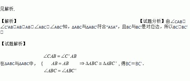 如图1所示,有一块巨大的长方形广告牌,上面画了一条对角线AC,为了求出这个广告牌的高BC,几个同学在地面上画出了ΔABC,(如图2所示),其中∠BAC′=∠BAC,∠ABC′是直角,则BC′的长和广告牌的高是相同的,你能说明其中的道理吗?