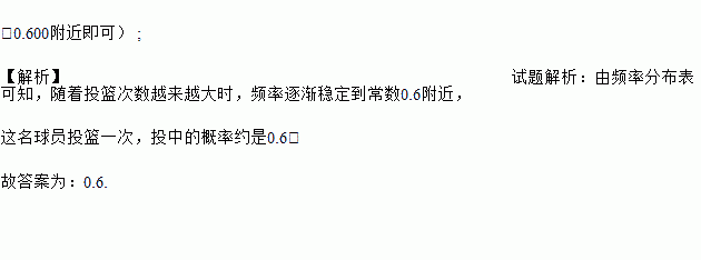 估计这名球员在罚球线上投篮一次,投中的概率为__________.