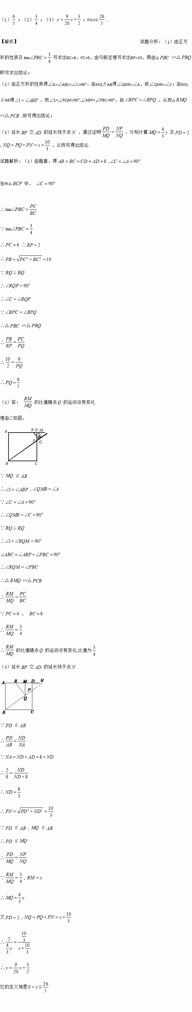 (3)如图3,若点Q在线段BP上,设PQ=x,RM=y,求y关于x的函数关系式,并写出它的定义域.