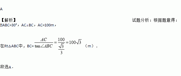Èçͼ£¬Ä³µØÐÞ½¨¸ßËÙ¹«Â·£¬Òª´ÓBµØÏòCµØÐÞÒ»×ùËíµÀ(B¡¢CÔÚÍ¬Ò»Ë®Æ½ÃæÉÏ)£¬ÎªÁ˲âÁ¿B¡¢CÁ½µØÖ®¼äµÄ¾àÀ룬ij¹¤³Ìʦ³Ë×øÈÈÆøÇò´ÓCµØ³ö·¢£¬´¹Ö±ÉÏÉý100mµ½´ïA´¦£¬ÔÚA´¦¹Û²ìBµØµÄ¸©½ÇΪ30¡ã£¬ÔòB¡¢CÁ½µØÖ®¼äµÄ¾àÀëΪ( )