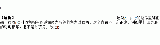 C. 等腰三角形底边上的高线和中线相互重合 D. 对顶角相等