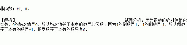 绝对值等于本身的数是 ;倒数等于本身的数是 ;相反数等于本身的数是 .