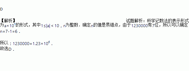 据瑞安市公安局统计,2014年末瑞安全市常住人口为1230000人,数据1230000用科学记数法可表示为 ( )
