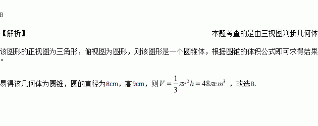 A.24cm3 B.48cm3 C.72cm3 D.192cm3