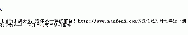 C. 任意打开七年级下册数学教科书,正好是97页是确定事件