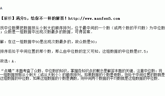 A. 90和87.5 B. 95和85 C. 90和85 D. 85和87.5