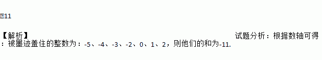 小明不慎将墨水滴在数轴上,根据图中的数值,判定墨迹盖住部分的整数的和是________ .