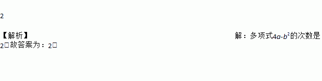多项式4a-b2的次数是__________________.