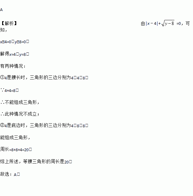 A. 20 B. 16 C. 20或16 D. 12