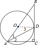 分析 (1)首先连接OD,由点B作⊙O的切线BD,过点A作切线BD的垂线,易证得OD∥AC,继而证得∠1=∠2=∠3,则可证得结论;