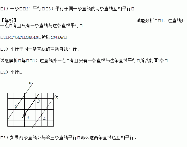 (2)过点D与直线AB平行的直线与(1)中所画的直线平行吗?