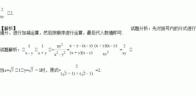 先化简,再求值:(-)÷,其中 x=+1,y=-1.