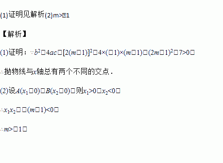 (1)求证:无论m取何值,抛物线与x轴总有两个不同的交点;