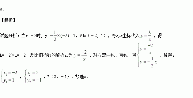 (3分)如图,双曲线与直线交于A、B两点,且A(﹣2,m),则点B的坐标是( )