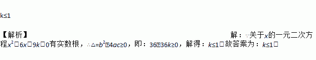 若关于x的一元二次方程x2-6x+9k=0有实数根,则k的取值范围是___________