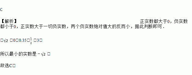 下列实数:3,0,,,0.35,其中最小的实数是( )