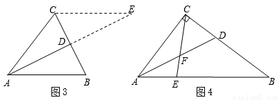 小芳发现:如图3,当△ABC为任意三角形时,过点C作AB的平行线,交AD的延长线于点E,利用此图可以证明成立.