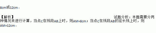 已知线段AB=10cm,直线AB上有一点C,且BC=4cm,M是线段BC的中点,则AM的长是 cm.
