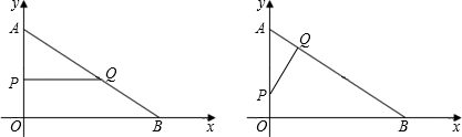 (2)由AO=6,BO=8得AB=10,①当∠APQ=∠AOB时,△APQ∽△AOB利用其对应边成比例解t.②当∠AQP=∠AOB时,△AQP∽△AOB利用其对应边成比例解得t.
