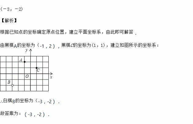 如图所示的围棋棋盘放在平面直角坐标系内(每个小方格的边长为1),黑棋A的坐标为(-1,2),黑棋C的坐标为(1,1),那么白棋B的坐标是________.