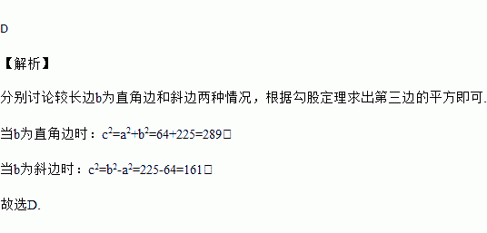A. 161 B. 289 C. 225 D. 161或289