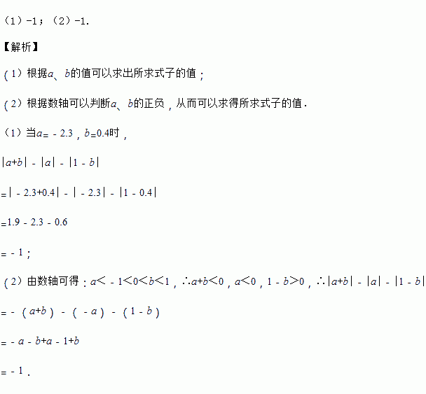 (1)已知a=–2.3,b=0.4,计算|a+b|–|a|–|1–b|的值;