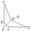 解:延长AB、DC相交F,连接F、E并延长至G.