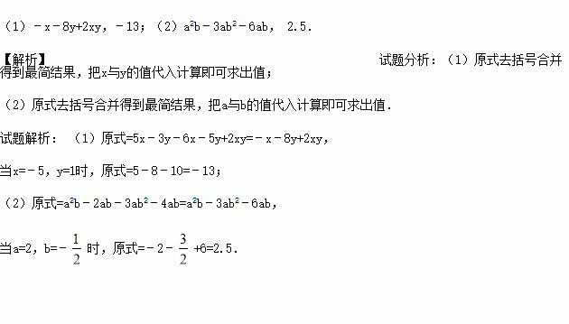 (1)(5x﹣3y﹣2xy)﹣(6x+5y﹣2xy),其中x=﹣5,y=1 ;