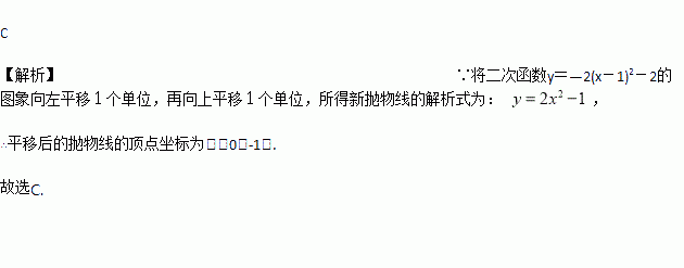 平面直角坐标系上将二次函数y=—2(x-1)2-2的图象向左平移1个单位,再向上平移1个单位,则其顶点为( )