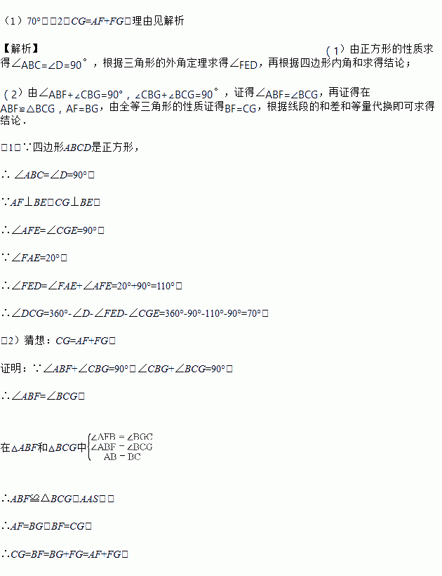 (1)若∠FAE=20°,求∠DCG的度数;