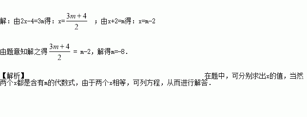 解方程:关于x的方程2x-4=3m和x+2=m有相同的解,则m的值是多少?
