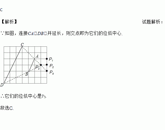 如图6×7的方格中,点A,B,C,D是格点,线段CD是由线段AB位似放大得到的,则它们的位似中心是( )