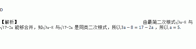 如果最简二次根式与能够合并,那么a的值为( ).