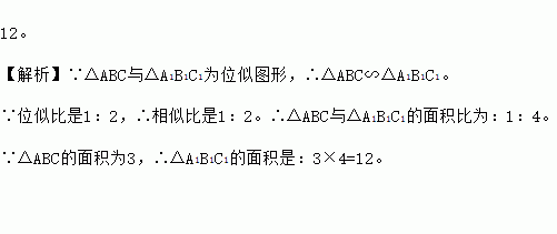 如图,△ABC与△A1B1C1为位似图形,点O是它们的位似中心,位似比是1:2,已知△ABC的面积为3,那么△A1B1C1的面积是 .