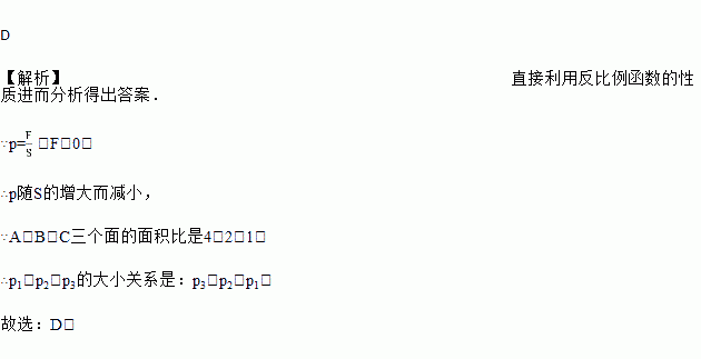 ,其中P是压强,F是压力,S是受力面积,则p1,p2,p3,的大小关系正确的是( )
