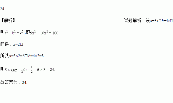在△ABC中,∠C=90°,若c=10,a:b=3:4,则=_____;