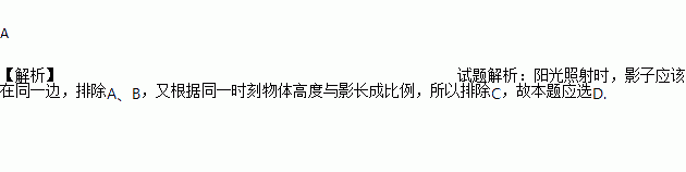 下列四幅图形中,表示两棵圣诞树在同一时刻阳光下的影子的图形可能是( )