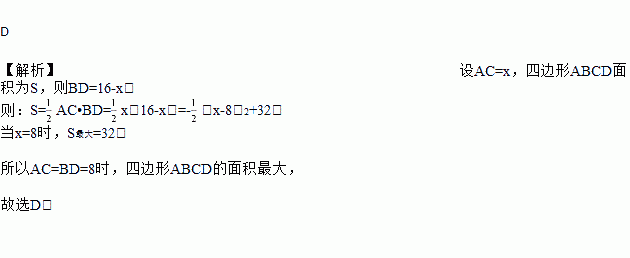 如图,四边形ABCD的两条对角线互相垂直,AC+BD=16,则四边形ABCD的面积最大值是( )