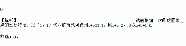 二次函数y=ax2+bx﹣1(a≠0)的图象经过点(1,1),则a+b+1的值是
