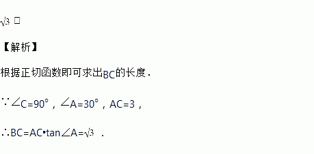 在中,∠,∠=30°,AC=3,则BC=_________.